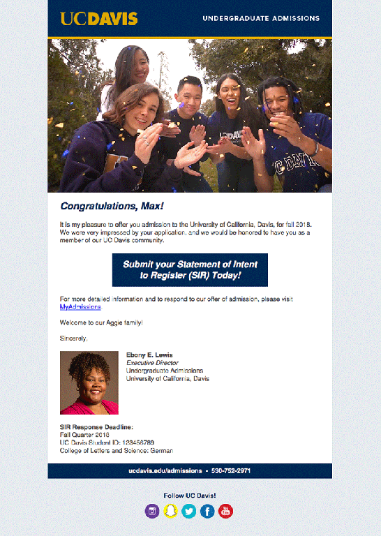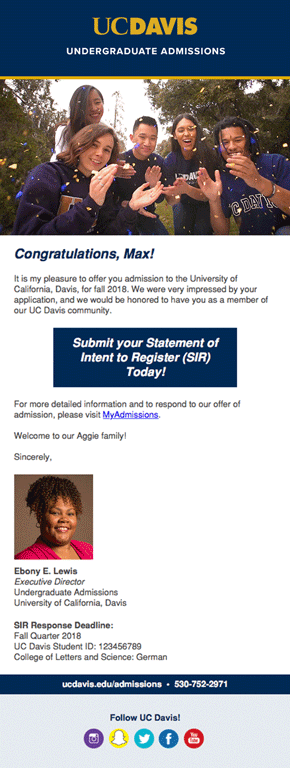 2018 UC Davis Admitted Student Campaign