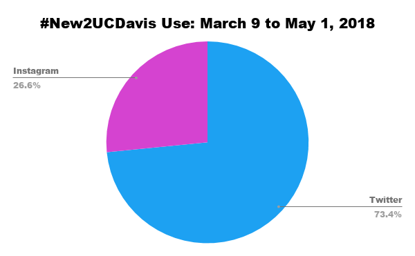 I served as the lead team member for social media marketing strategy in UC Davis Undergraduate Admissions’ 2018 Admitted Student Campaign. With an eye for innovation and using new tools to engage admitted students, our team employed several tactics, including a hashtag strategy (#New2UCDavis), Facebook profile filter, pre-prepared downloadable social media squares, Facebook groups for admitted first-year students and for admitted transfer students, and two Facebook live panel broadcasts featuring current UC Davis students. I also provided consultation on other aspects of the campaign to include pathways for admitted students to engage with UC Davis on social media.