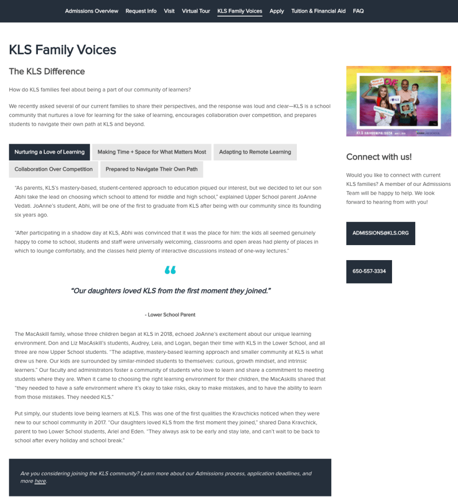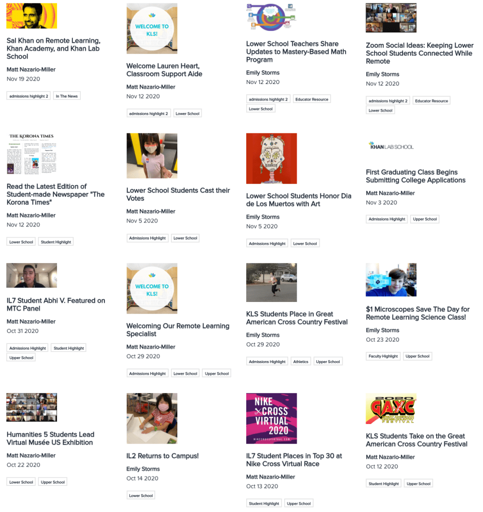 I transitioned Khan Lab School to a new web management platform, Finalsite, to make sharing stories a more polished and dynamic experience.