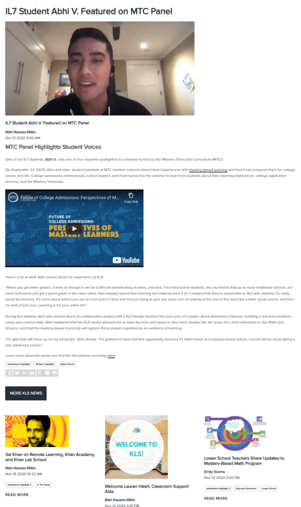 Khan Lab School: KLS News